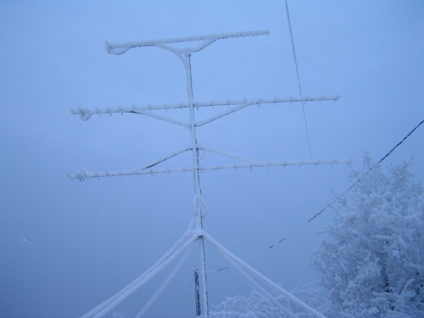 A 70cm-es és a 2 méteres antennáink a hegyen télen