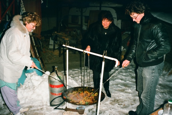 Télen is működik a tárcsás flekken sütése, HA3TLR a családdal