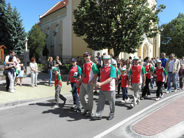 Az idősebb rádióamatőrök és ifjak felvonulása a szezonnyitó ünnepségen