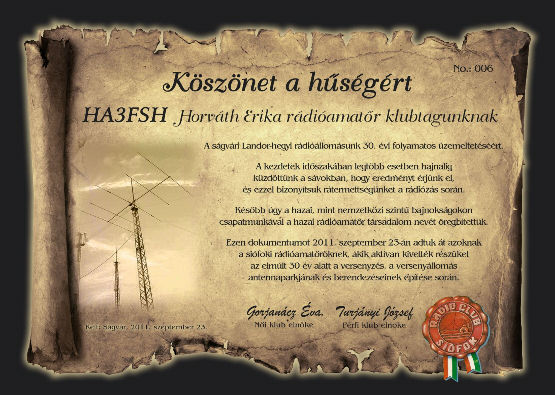 Azok a klubtagjaink kapták meg a hűségnyilatkozatot, akik a 30 éves Landor-hegyi birtokbavétel után végigkűzdötték versenyeinket. Átadásra kerültek az oklevelek, az ünnepségen 2011. szeptember 23-án.